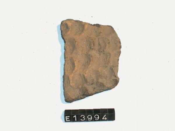 Frammento di olla con decorazione ad alveare composta da ditate impresse in modo regolare.
