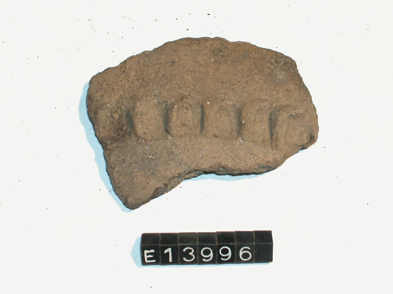 Frammento di parete di olla decorata da una fila orizzontale di fitte ditate regolari.