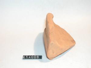 Frammento di orlo e parete di mortaio. Orlo piatto, larga presa a tesa obliqua all'esterno dell'orlo.