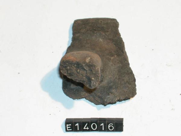 Frammento di orlo e parete forse pertinenti a boccale, con ansa a nastro.