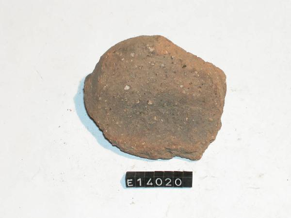 Presa a linguetta orizzontale e parete di recipente in ceramica grossolana.