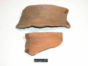 Frammento di orlo e parete di urna con orlo arrotondato, labbro esoverso, gola profonda decorata esternamente da solcature orizzontali.
