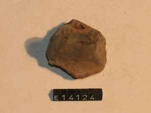 Frammento di ansa di sezione rettangolare, con bottone per inserimento nella parete. Superficie marrone rosata.