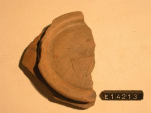Frammento di fondo di ciotola con piede ad anello; dipintura rossa esterna e interna; iscrizione incisa sul fondo.