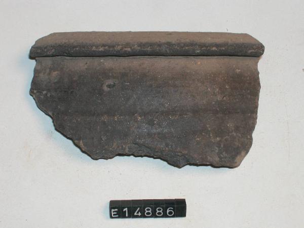 Frammento di olla con orlo ribattuto e leggera costolatura sulla spalla