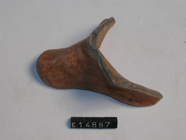 Frammento di recipiente con becco in ceramica dipinta esternamente di rosso