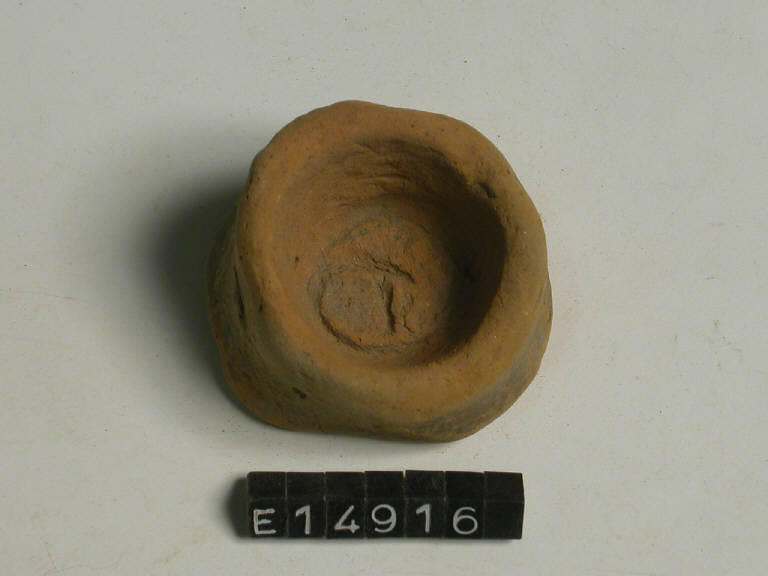 Frammento di fondo di bicchierino cilindrico con fondo piatto e superficie nero lucida; forse appartiene a un bicchiere a risega mediana tipo G