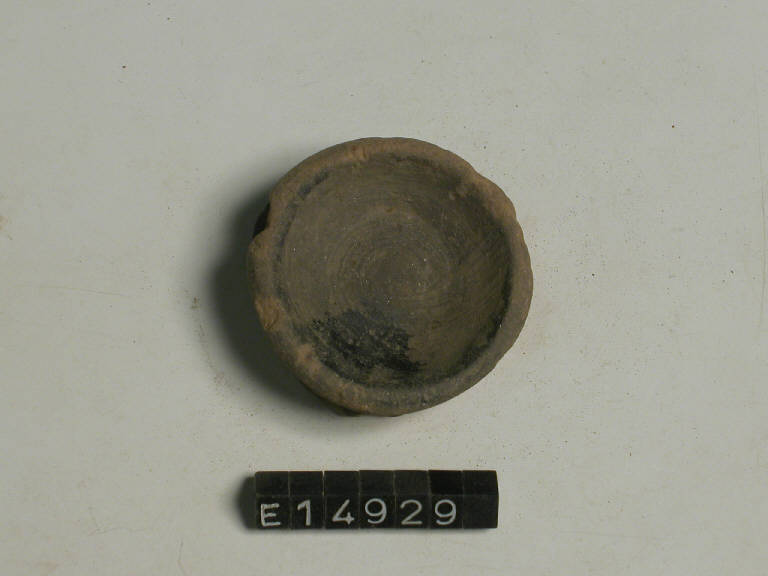 Frammento di piede ad anello di recipiente con superficie nero lucida, forse interpretabile come bicchierino.