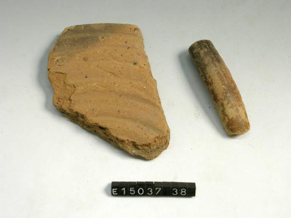 Frammento di mortaio con solchi del tornio esterni e costolature esterne.