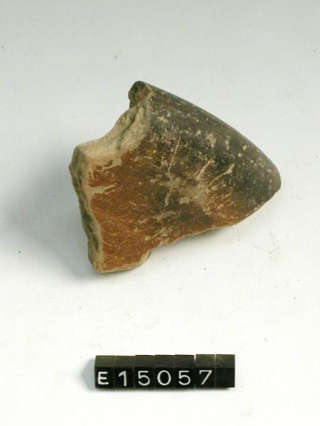 Frammento di orlo e parete di ciotola con labbro assottigliato introflesso; superficie rosso corallina.