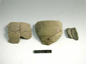 Frammento di olla a corpo globulare con una solcatura orizzontale nella parte superiore della parete.