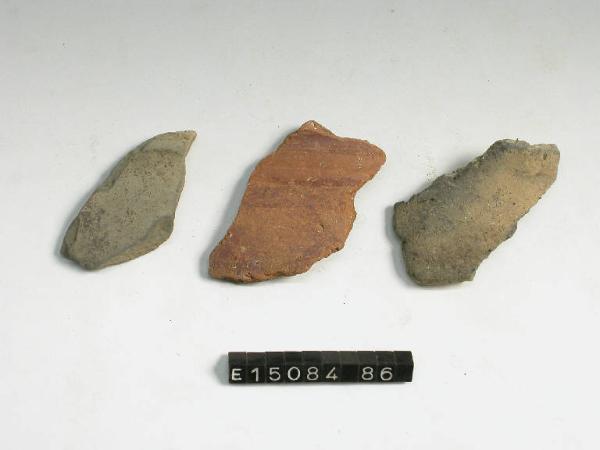 Frammento di fondo di ciotola con bassissimo piede ad anello. Tracce di sovraddipintura all'esterno.