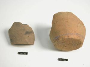 Frammento di fondo piano con parete di recipiente a corpo troncoconico.