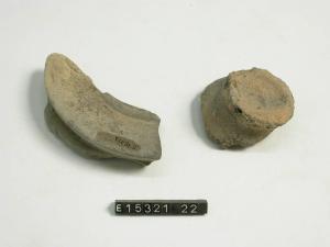 Frammento di piede obliquo con tracce di pittura all'interno e all'esterno.