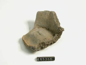 Frammento di fondo piatto e avvio di parete pertinente ad un recipiente non meglio classificabile; la superficie esterna presenta tracce di alterazione dovute ad azione termica.