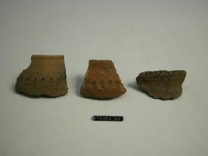 Olla a corpo ellittico; sulla spalla decorazione ad unghiate.