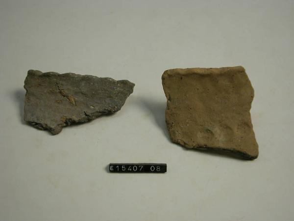 Recipiente non meglio classificabile con orlo decorato a larghe tacche e labbro verticale.