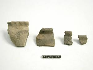 Recipiente con orlo arrotondato, labbro estroflesso; sulla spalla decorazione incisa a zig-zag.