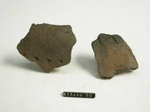 Frammento di parete che reca sulla superficie un motivo decorativo costituito da una linea a zig-zag incisa.