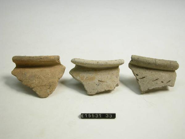 Orlo arrotondato estroflesso; labbro diritto; sulla spalla motivo ad incisione costituito da serie di tacche oblique.