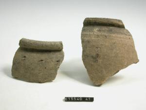 Orlo ingrossato ; sotto la gola serie di piccole tacche oblique parallele ad incisione.