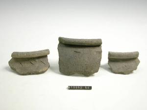 Orlo arrotondato estroflesso; sulla spalla decorazione a piccole tacche incise.