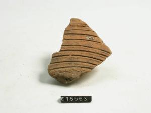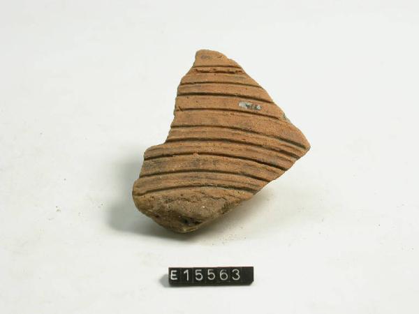 Frammento di parete con serie di solcature parallele.