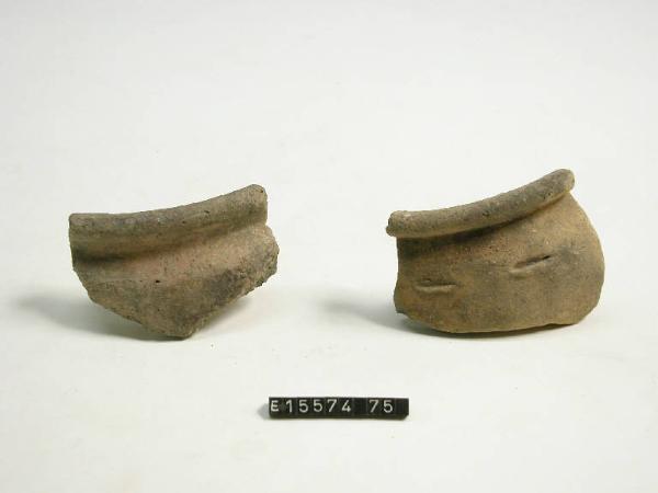 Orlo arrotondato estroflesso; sulla spalla serie di tacche incise.