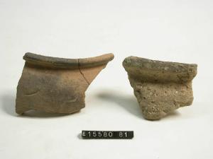 Orlo arrotondato; labbro verticale esoverso; sulla spalla serie di tacche incise.
