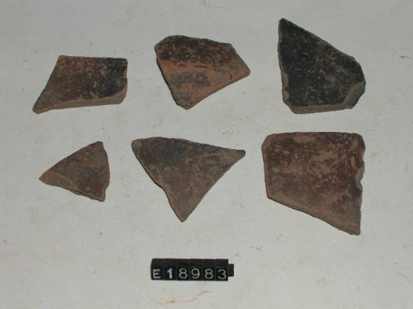 Frammento di coppa con labbro gradiforme e superficie esterna decorata a stralucido.
