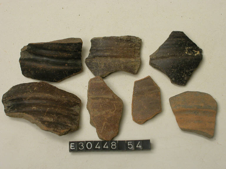 Frammento di parete costolata di bicchiere a risega mediana (tipo A1, B, C1 o D1), con superficie a stralucido