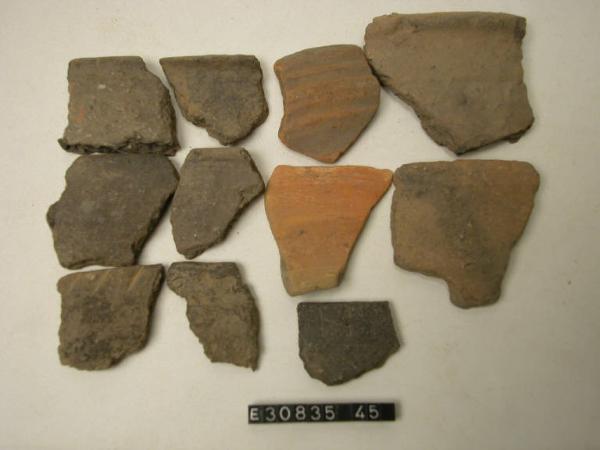 Frammento di olletta con breve labbro esoverso e orlo arrotondato.