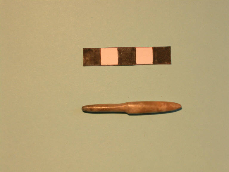 Punta di freccia fusiforme con peduncolo distinto, a sezione circolare.
