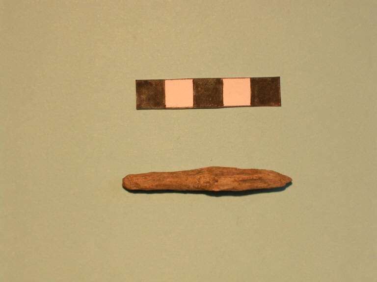 Punta di freccia in corso di lavorazione, con la testa appena distinta dal codolo, superficie non abrasa.