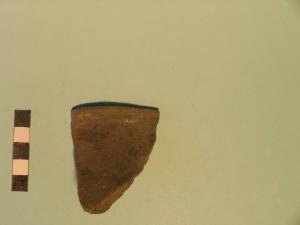 Frammento di orlo arrotondato, labbro fortemente esoverso, pertinente a vaso a profilo biconico/ovoide.