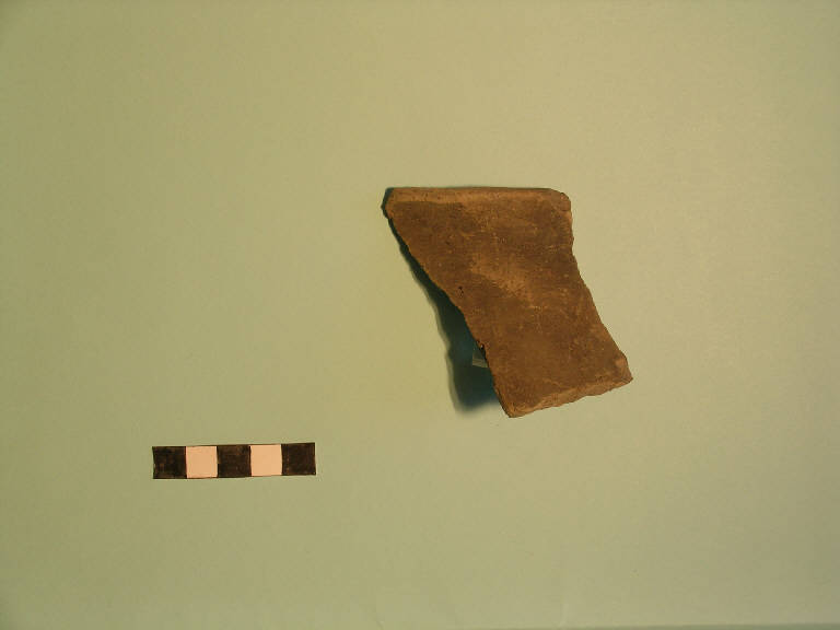 Frammento di vaso biconico con orlo arrotondato, breve labbro esoverso, attacco di parete rettilinea.