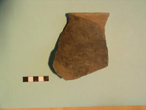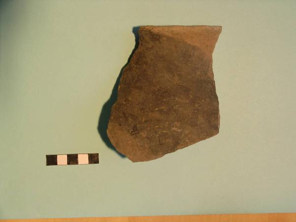 Frammento di olla, orlo arrotondato, labbro esoverso, spalla pronunciata.