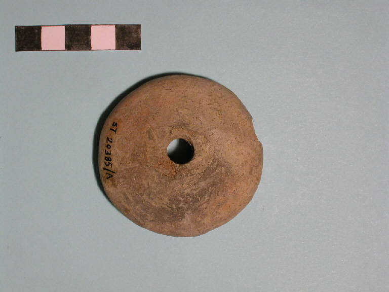 Fuseruola a corpo cilindrico con parte superiore troncoconica, base concava in corrispondenza del foro passante.