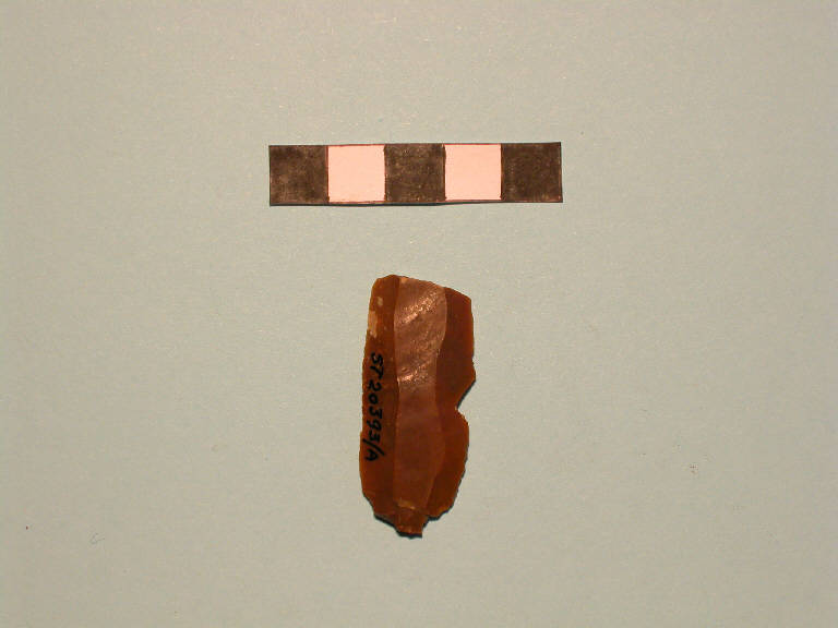 Parte prossimale di lama, ritocco semplice marginale sinistro inverso e semplice marginale prossimale destro.