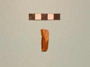 Parte prossimale di lamella, ritocchi inframarginali; presenta parte di cortice sulla faccia superiore.