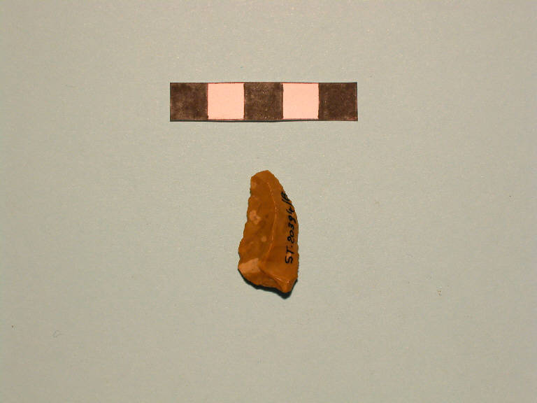 Raschiatoio su lama corta a profilo sinuoso, ritocco semplice marginale.