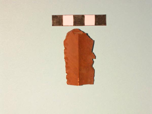Troncatura su parte distale di lama, ritocco semplice misto marginale sinistro, opposto a ritocco semplice marginale.