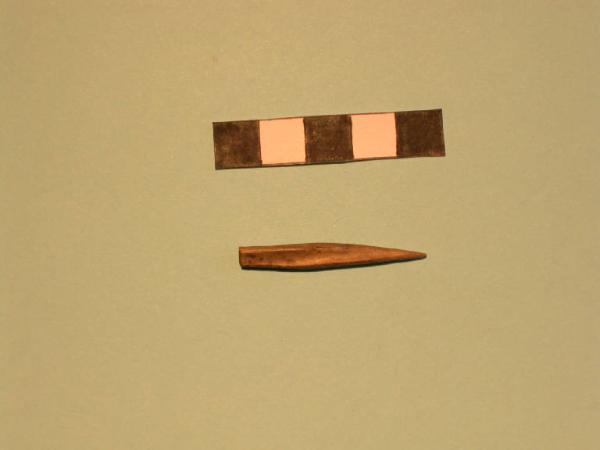 Sottile punta ricavata dalla diafisi di osso lungo, presenta una frattura a un'estremità.