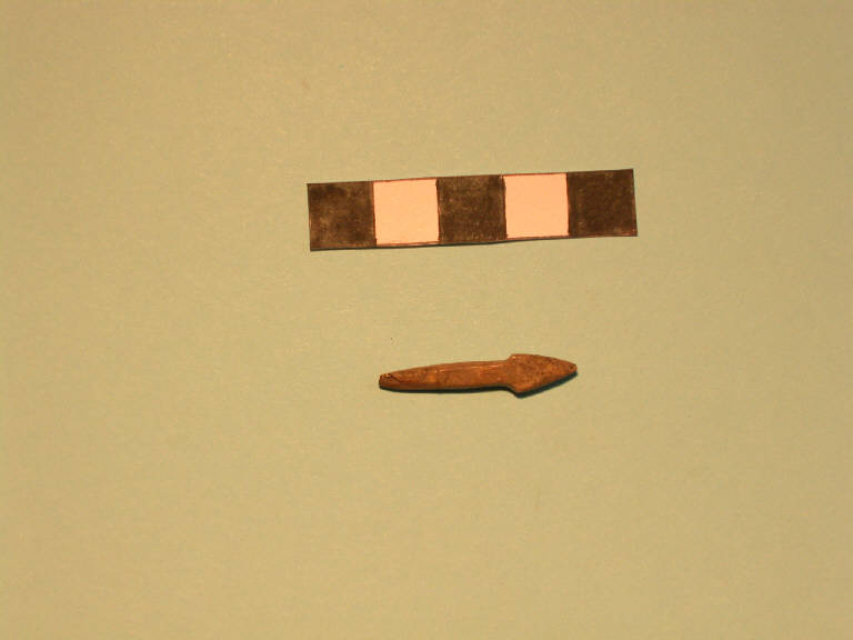 Punta di freccia con testa tronco-piramidale a sezione quadrangolare, codolo distinto a sezione subcircolare.