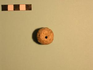 Manufatto subsferico in terracotta; presenta un foro non passante.