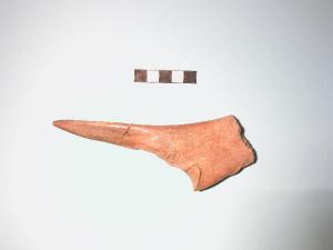 Punta robusta ricavata dall'ulna di un mammifero di grandi dimensioni; l'estremità appuntita è stata ottenuta per abrasione, le cui tracce sono evidenti sul reperto.