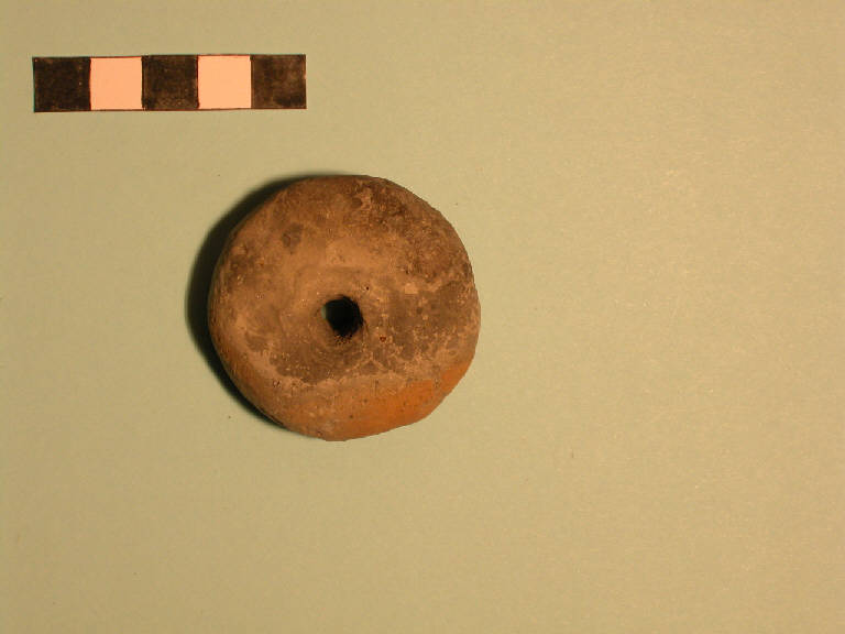 Fuseruola a corpo globoso, base irregolare, lati convessi, foro leggermente eccentrico.