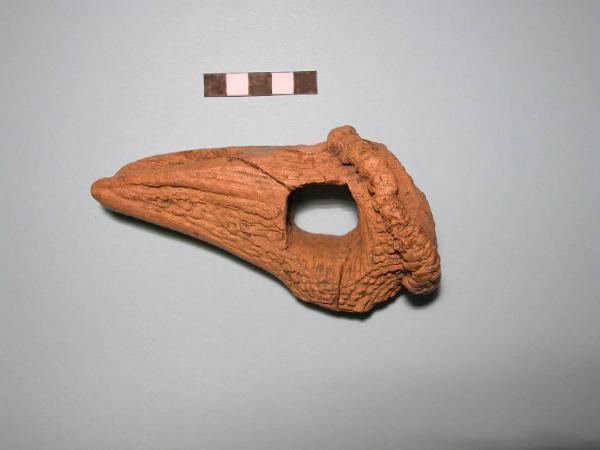 Zappetta ottenuta dalla parte basale di un corno di cervo, con foro quadrangolare nella parte prossimale e tagliente ottenuto con taglio longitudinale e levigatura della parte distale.