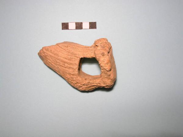 Zappetta ottenuta dalla parte basale di un corno di cervo, con foro quadrangolare nella parte prossimale e tagliente ottenuto con taglio longitudinale e levigatura della parte distale, conservata parzialmente.