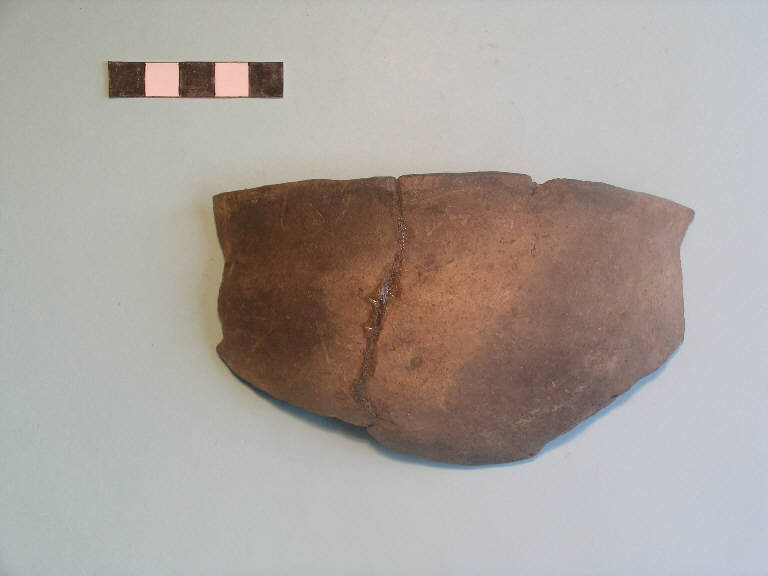 argilla/ lavorazione a mano||impasto medio, superficie scabra||colore bruno